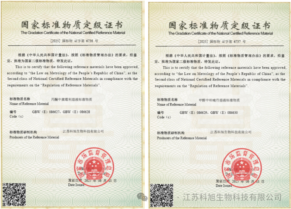 In the journey of corporate development, there are always moments that shine like stars, illuminating the path forward ✨. Jiangsu Kexu Biotechnology Co., Ltd.’s successful acquisition of the National Reference Material Grading Certificate is one such star! This honor is a high recognition of the company’s relentless efforts and deep expertise, and it also serves as a new key to unlocking the future of reference material development 🔑!